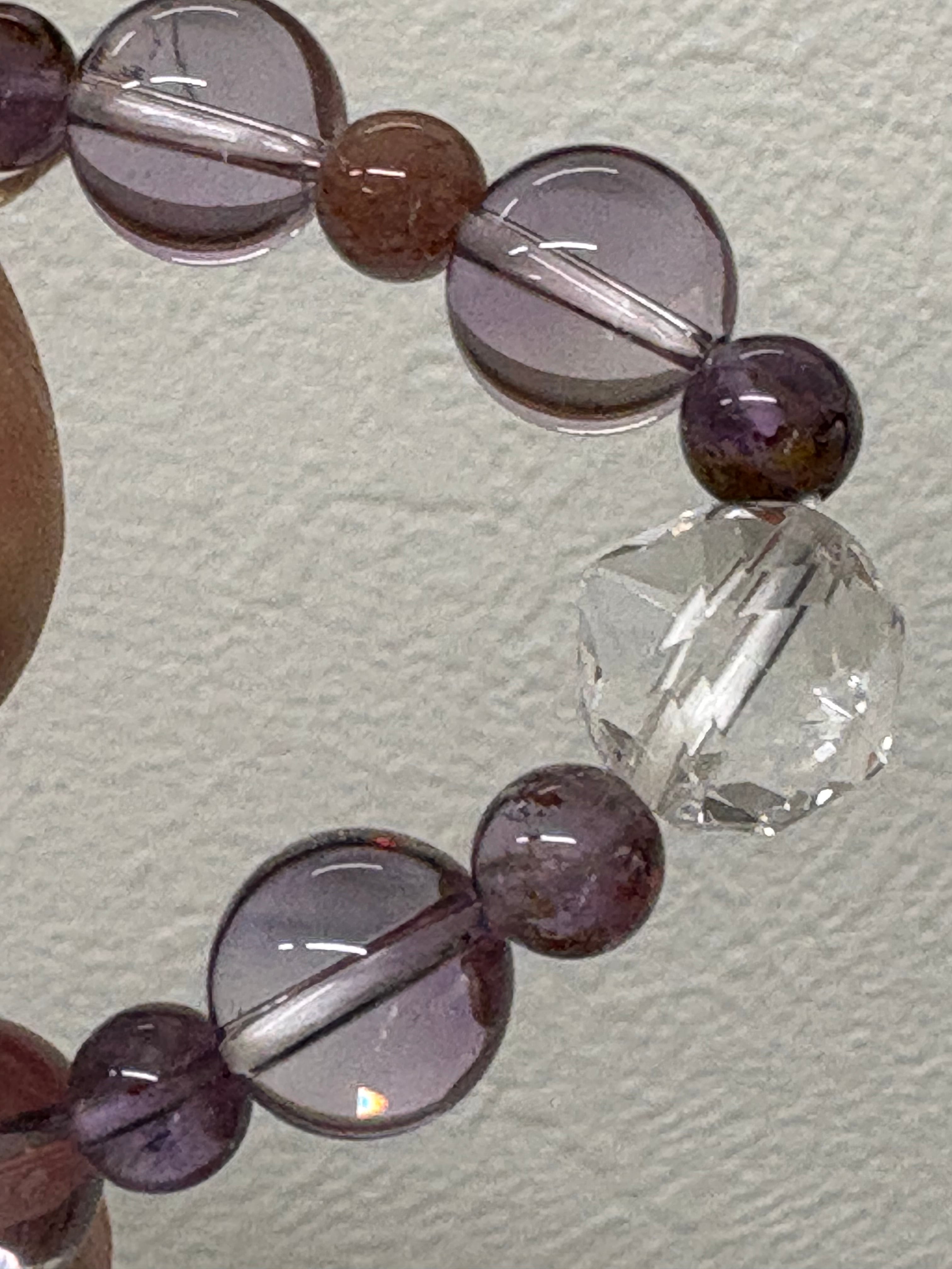アメジストエレスチャルとアメトリン、さらに水晶を使用したブレスレットです。