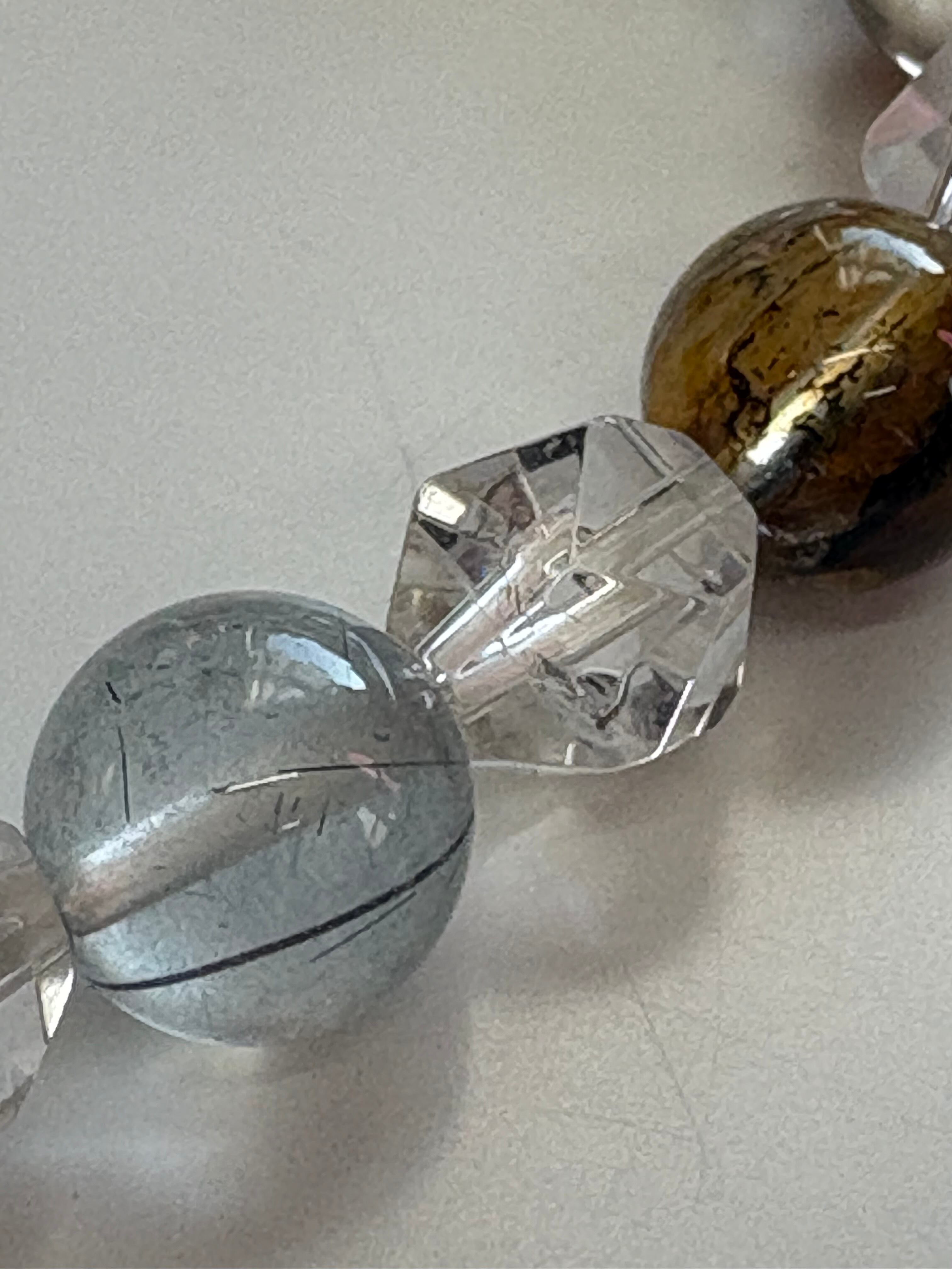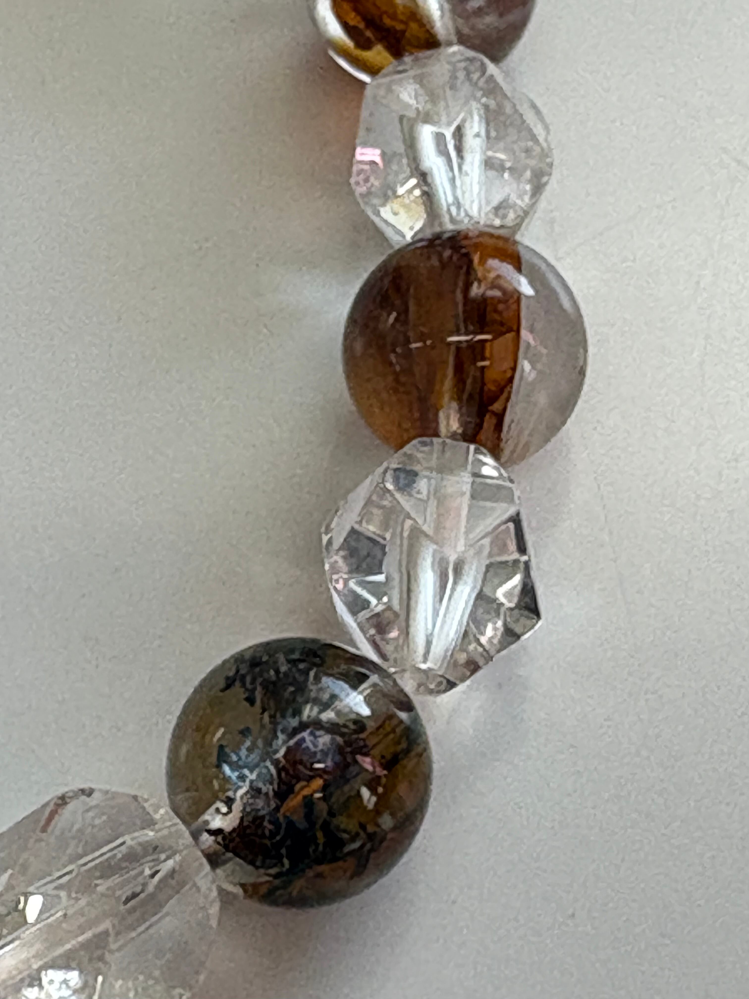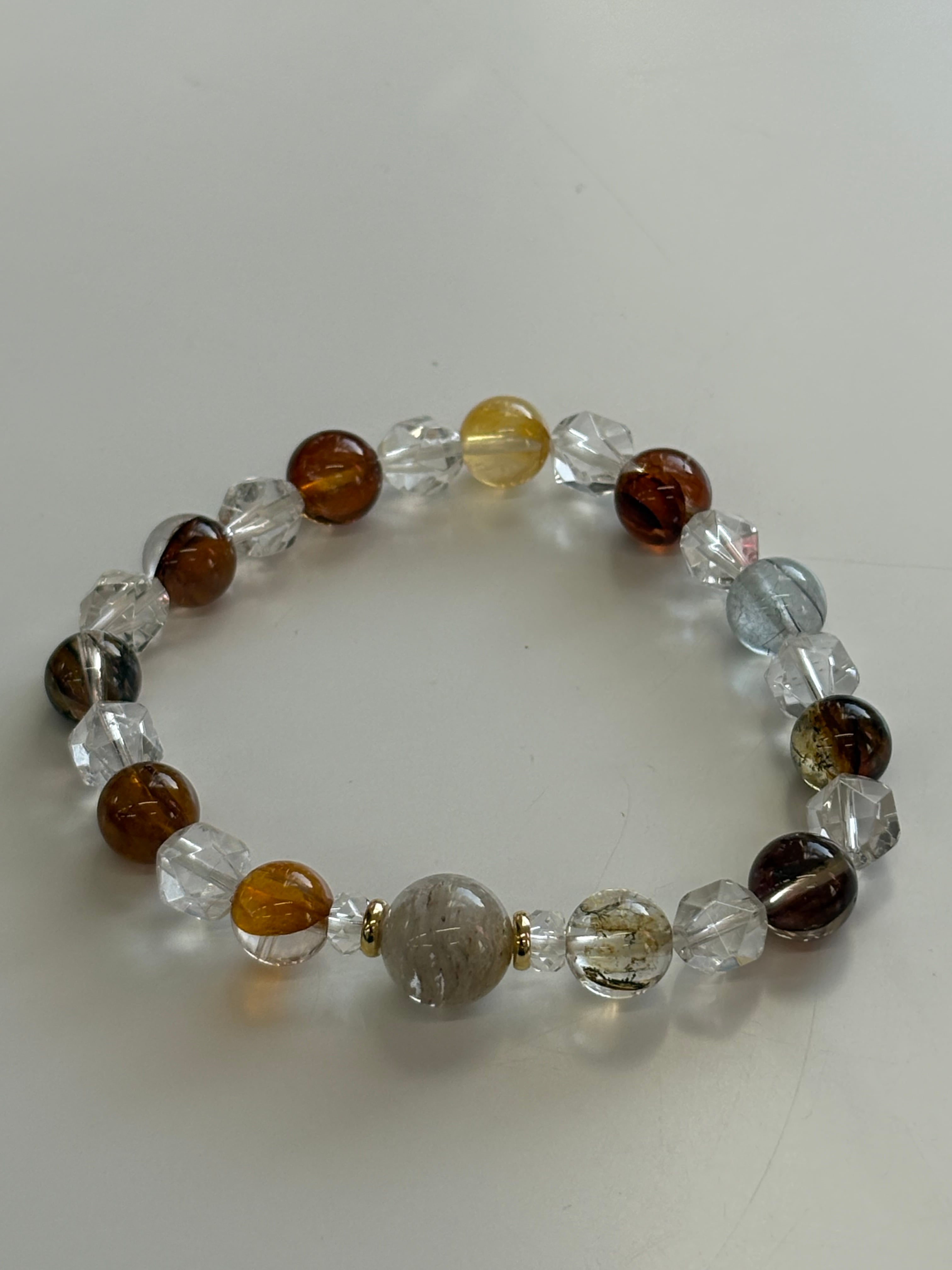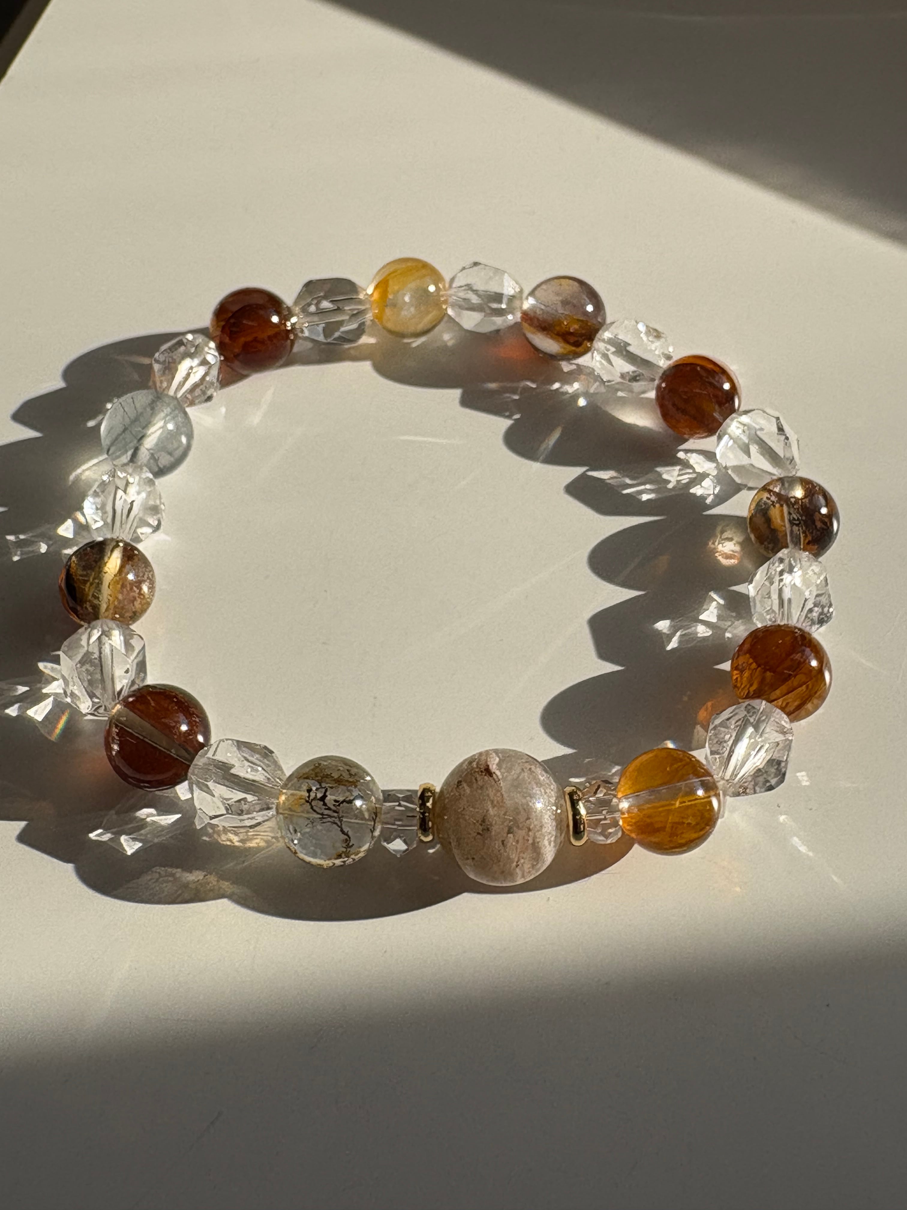 ガーデンクォーツと水晶を組み合わせたこのブレスレットは、デンドリックやルチルのような模様を内包し、自然の美しさをそのまま表現しています。